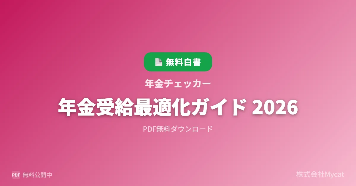 そこで、株式会社Mycatが提供する「年金受給最適化ガイド 2026」が登場しました。このガイドは、厚生労働省と日本年金機構のデータを元に、年金制度を理解し、受給を最適化するための知識を提供しています。