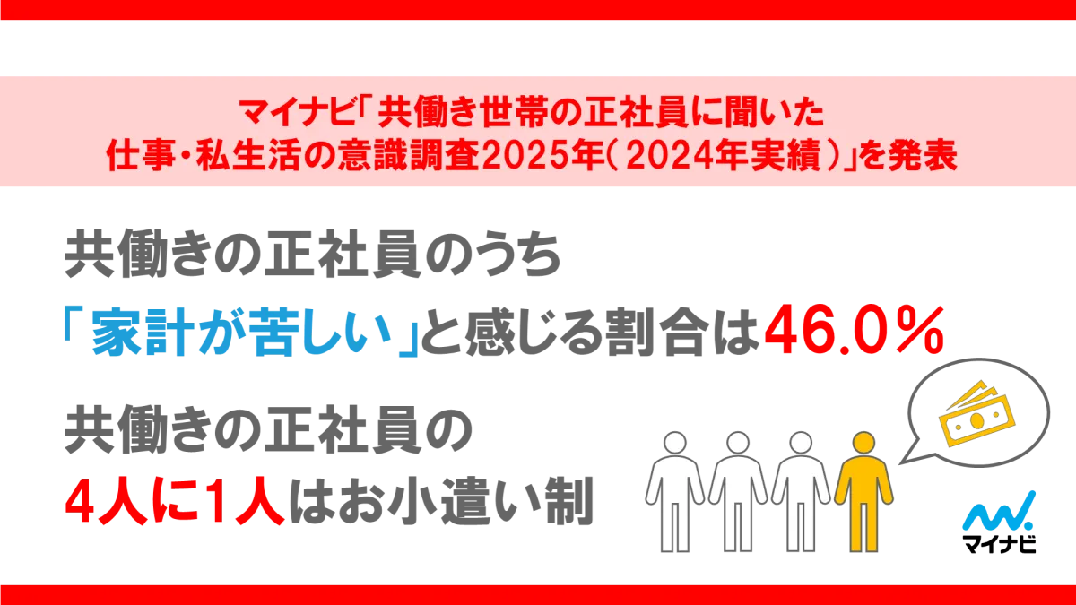 株式会社マイナビが実施した「共働き世帯の正社員に聞いた仕事・私生活の意識調査2025年(2024年実績)」の結果が公開されました。この調査は主に20~59歳の共働きの正社員を対象に行われ、家庭の経済状況や就業意識について多くの興味深いデータが得られました。