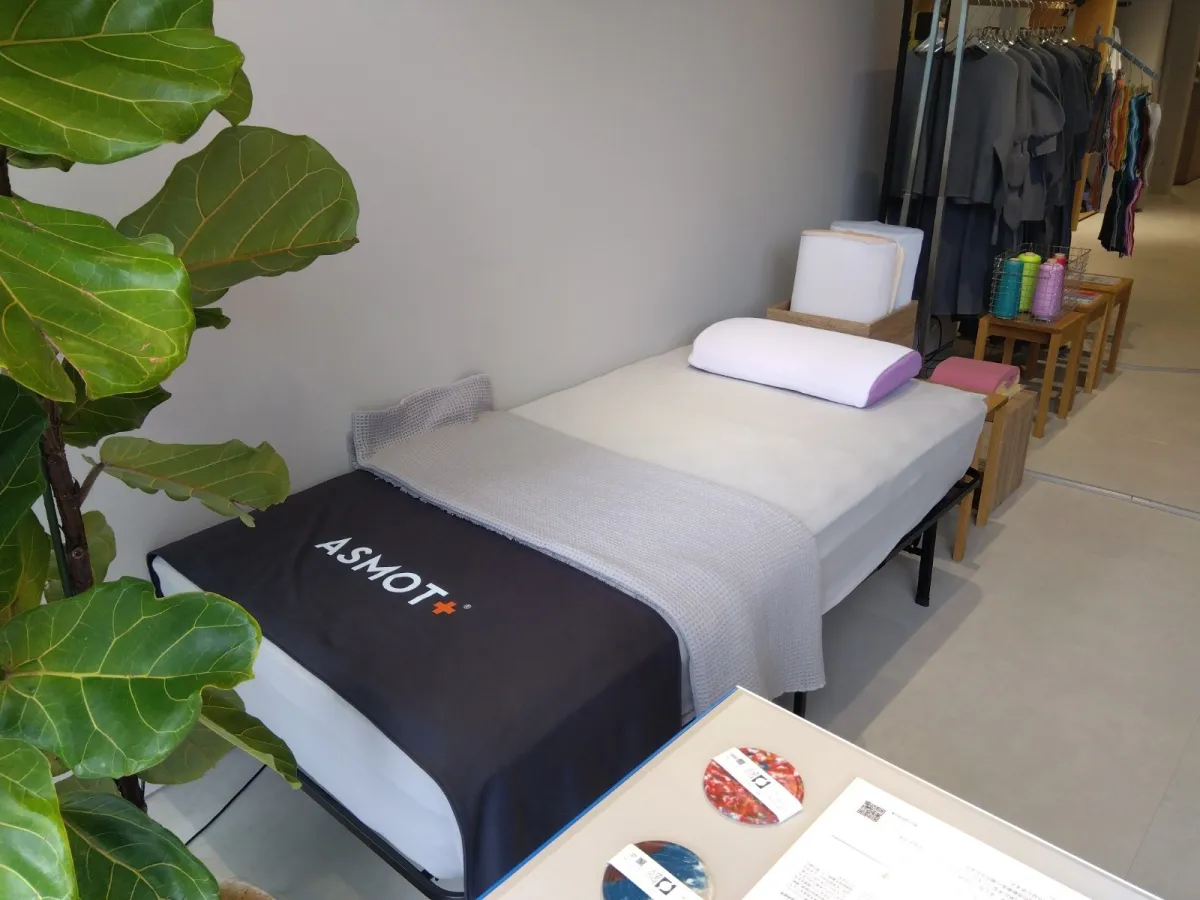 「明日見世」は“買う”ではなく“出会う”をテーマにした、未来のアイテムとそのブランドストーリーを体験できる新感覚のストアです。この場所では、ASMOTの枕以外にも多様なアイテムが展開されており、訪れることで新たな発見を楽しむことができます。また、期間限定のカフェやイベントも同時に開催されているため、訪れるたびに新しい体験が待っています。