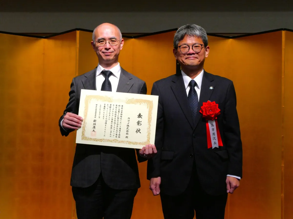 カゴメ株式会社は、環境負荷を軽減するために、モーダルシフトに取り組んでいます。この度、同社とF-LINE株式会社が国土交通省海事局による「エコシップ・モーダルシフト事業 優良事業者」に選定され、授与式で表彰を受けました。この受賞は、長距離輸送における海上貨物の利用拡大、物流の持続性向上、そして環境への配慮を一層促進するものです。