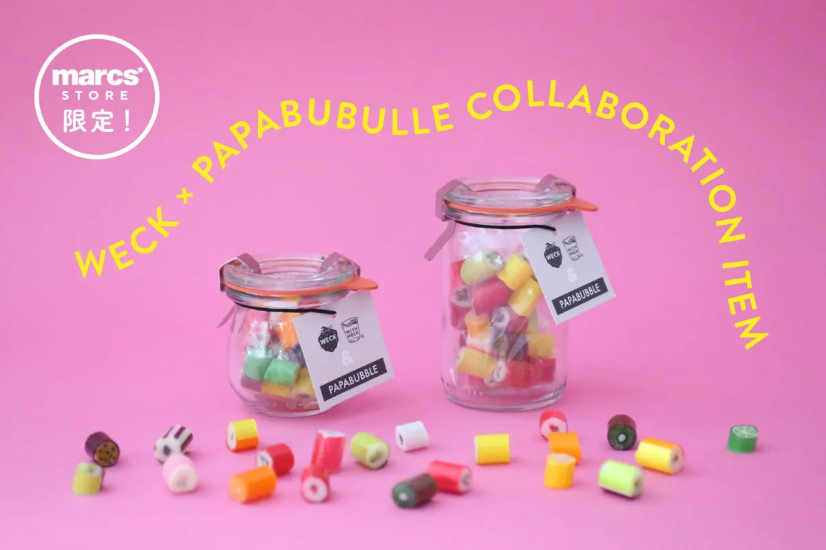 この特別な商品は、ドイツ製のガラス保存容器『WECK』と、スペイン発のキャンディ専門店『PAPABUBBLE(パパブブレ)』のキャンディが組み合わさったものです。直営ECサイト「marcs STORE」では、2025年11月27日から販売が開始されます。