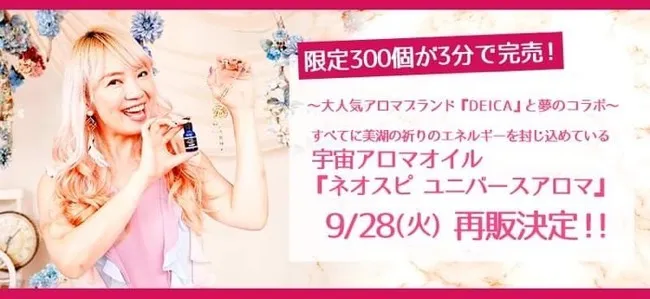 スピリチュアルなライフスタイルを提案するアロマブランド「DEICA」との夢のコラボレーションで誕生した宇宙アロマオイル『ネオスピ ユニバースアロマ』が話題です。このアロマオイルは、発売されるたびにあっという間に完売し、毎回強い人気を誇っています。