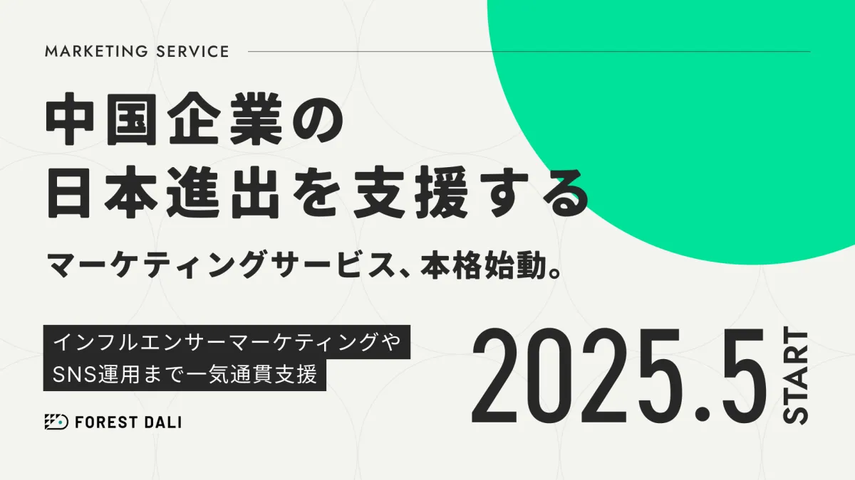 株式会社Forest Dali(東京都渋谷区)は、今やビジネスにおいて無視できない存在となりつつある中国市場に特化したマーケティング支援サービスの提供を本格的にスタートします。代表取締役の矢延崚氏が率いるこの企業は、中国語を母国語とするスタッフを有し、InstagramやTikTokといった日本向けSNSプラットフォームを効果的に利用したブランディング施策やインフルエンサー活用のプロモーション、コンテンツ制作、さらにはコミュニティ設計に至るまで、ワンストップでサポートを行います。