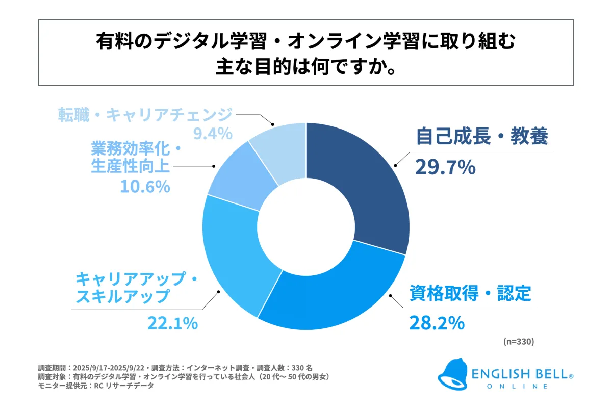 調査結果によれば、社会人がデジタル学習に取り組む主な目的は以下の通りです。