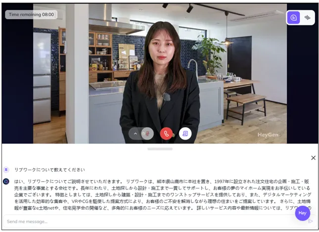 「AI松永さん」は、当社のYouTubeチャンネルにも出演している社員・松永奈々をモデルにしており、オンライン上での顧客との接続を可能にします。具体的には、住宅商品や会社の案内、採用情報に関する質問に対して、音声や文字による自然な会話を実現しています。