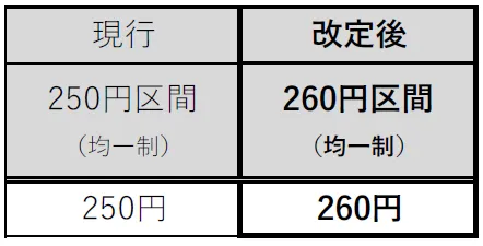 新しい運賃は、普通旅客運賃と定期旅客運賃の両方が設定されており、現行の運賃との比較が行われます。特に、スクールパス(SP250)を利用している学生は、現行の価格で阪神バス260円区間の乗車が可能なため、その点も考慮に入れる必要があります。