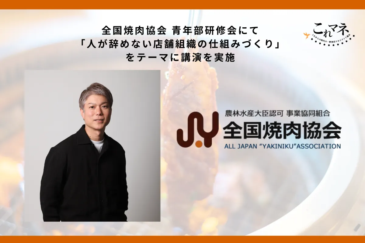 全国焼肉協会の青年部による研修会では、現代の飲食業界が直面する人手不足や低い定着率の問題に焦点を当て、「人が辞めない店舗組織の仕組みづくり」というテーマで講演が行われました。この研修会は、全国の焼肉経営者や次世代リーダーたちに向けて、実践的なノウハウを共有することを目的としています。