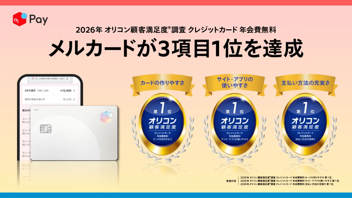 株式会社メルペイが展開するクレジットカード「メルカード」が、2026年のオリコン顧客満足度調査で見事に3つの評価項目で第1位を獲得しました。その評価項目とは、「カードの作りやすさ」、「サイト・アプリの使いやすさ」、そして「支払い方法の充実さ」です。この快挙は、今後の金融サービスにおける顧客体験の新しい指標となることでしょう。