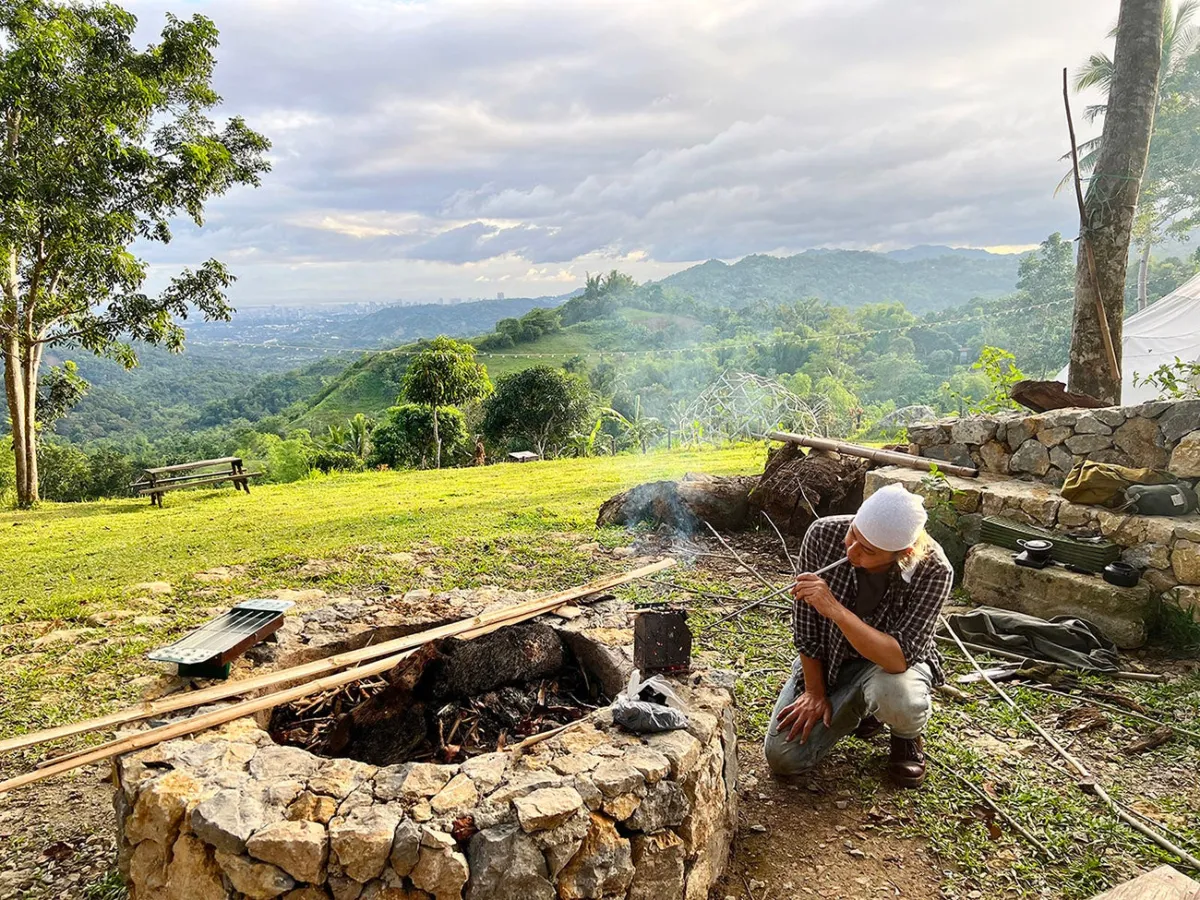 キャンプ地「Camp foRRest」に到着すると、開放感あふれる自然の中で、彼のキャンプが始まります。このキャンプ場は、セブ島全体を見渡せる美しいロケーションが魅力の一つです。