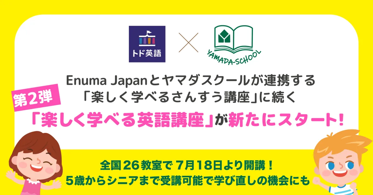 Enuma Japan合同会社(東京都千代田区)と株式会社ヤマダデンキ(群馬県高崎市)が手を組み、2025年7月18日(金)から全国26教室で『楽しく学べる英語講座』が始まります。このプログラムは、現在開講中の『楽しく学べるさんすう講座』に続く第2弾として登場します。