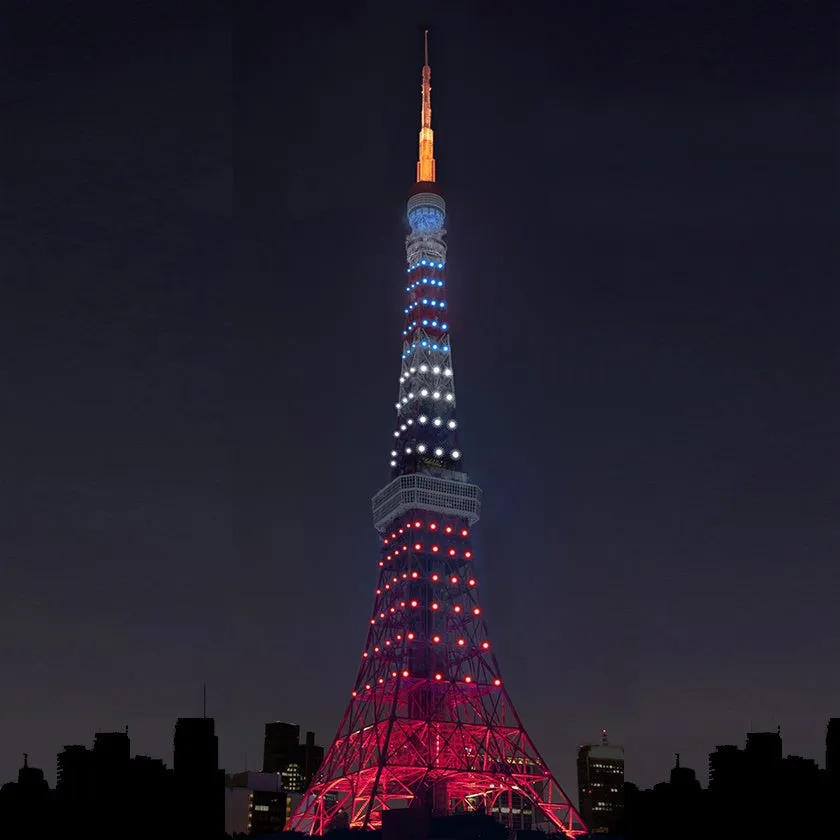 東京タワーがアスリート達を称え、トリコロールカラーにライトアップ