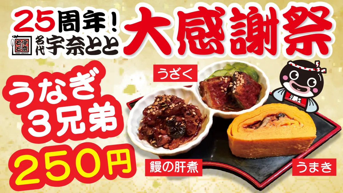 宇奈ととは、日本各地で多くのお客様に愛されてきた鰻の専門店です。創業から25年を迎え、この特別な節目に感謝の気持ちを込めた様々な企画を実施中です。今回、その25周年を記念した第4弾として、特別企画「うなぎ3兄弟」が登場しました!