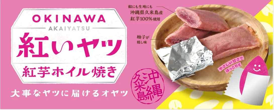 「OKINAWA紅いヤツ紅芋ホイル焼き」は、「沖縄生まれの紅いヤツ。大事なヤツに届けるオヤツ。」というテーマで開発され、久米島産紅芋のしっとりとした食感と、柚子の爽やかな風味が絶妙に組み合わさっています。このスイーツは、発売以来、その独特な味わいと可愛らしいパッケージで多くのリピーターを生んでいます。