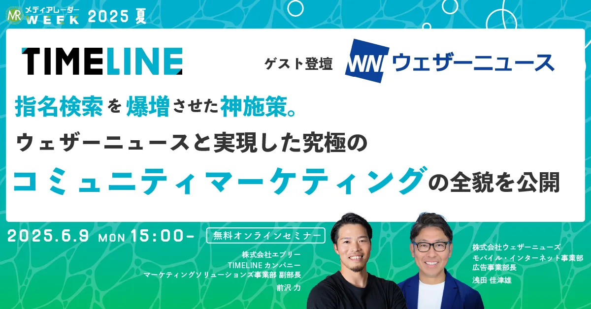 2025年6月9日、株式会社アイズが主催する「第18回メディアレーダーWEEK 2025 夏」にて、株式会社エブリー及び株式会社ウェザーニューズが登壇します。このセミナーでは、特にブランド名による指名検索の増加を目指した施策に焦点を当て、多くの企業が直面する課題を解決するための実践的なノウハウを提供します。