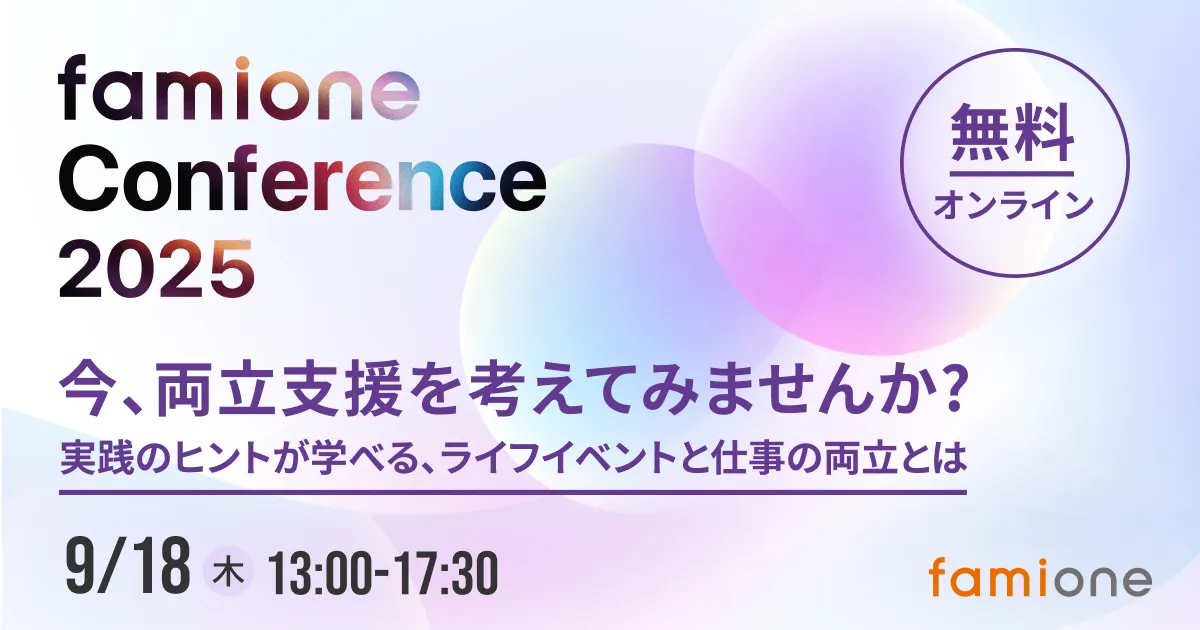 毎年恒例の「ファミワンカンファレンス」が2025年9月18日、オンラインで開催されます。テーマは「今、両立支援を考えてみませんか?- 実践のヒントが学べる、ライフイベントと仕事の両立とは-」です。このカンファレンスは、主に人事や総務、健康経営担当者など、各企業で両立支援に関心を持つ方々を対象にしています。