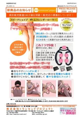 累計販売数量が100万個を超えた「スピードシェイプシリーズ」に、新たに「マッサージローラー」が加わりました。このアイテムは、特に立ち仕事や座り仕事で疲れた体をしっかりとサポートする役割を果たします。
