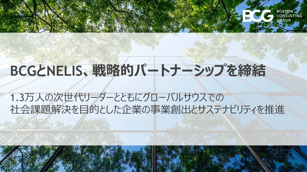 経営コンサルティングファームのボストン・コンサルティング・グループ(BCG)と一般社団法人NELIS(Next Leaders’ Initiative for Sustainability)は、グローバルサウスにおけるサステナビリティ課題の解決を目指すため戦略的パートナーシップを締結しました。この協業は、企業のサプライチェーンの持続可能性向上を支援することを主な目的としています。
