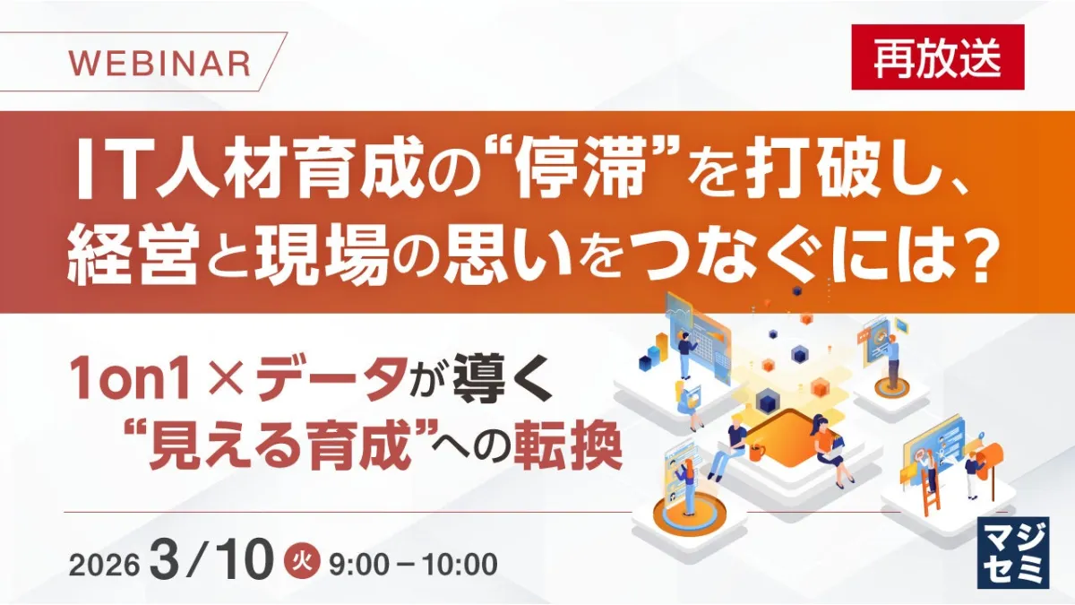 本ウェビナーでは、「育成の視界不良」を解消するためのカギとして1on1を強調します。多くの企業で1on1が「雑談」に終わってしまう現状を打破し、エンジニアのスキル成長やプロジェクトの成果に直結させる方法を学びます。特に、育成施策が企業成長につながる仕組みを作ることが重要であり、各部下の取り組みやスキルの向上を明確にすることで、1on1が育成の成果を生む場となることを目指します。
