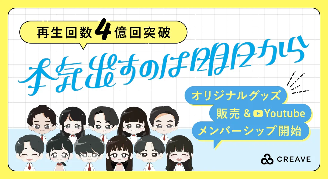 総再生回数が4億回を突破した人気のバーチャルショートドラマ『本気出すのは明日から。』が、オリジナルグッズの販売とYouTubeメンバーシップの実施を発表しました。この数々の新企画は、CREAVE株式会社(東京都千代田区)が手がけています。代表の中村真奈氏は、ファンロイヤリティを高めるために、観客のリアルな声を反映させたという背景があります。