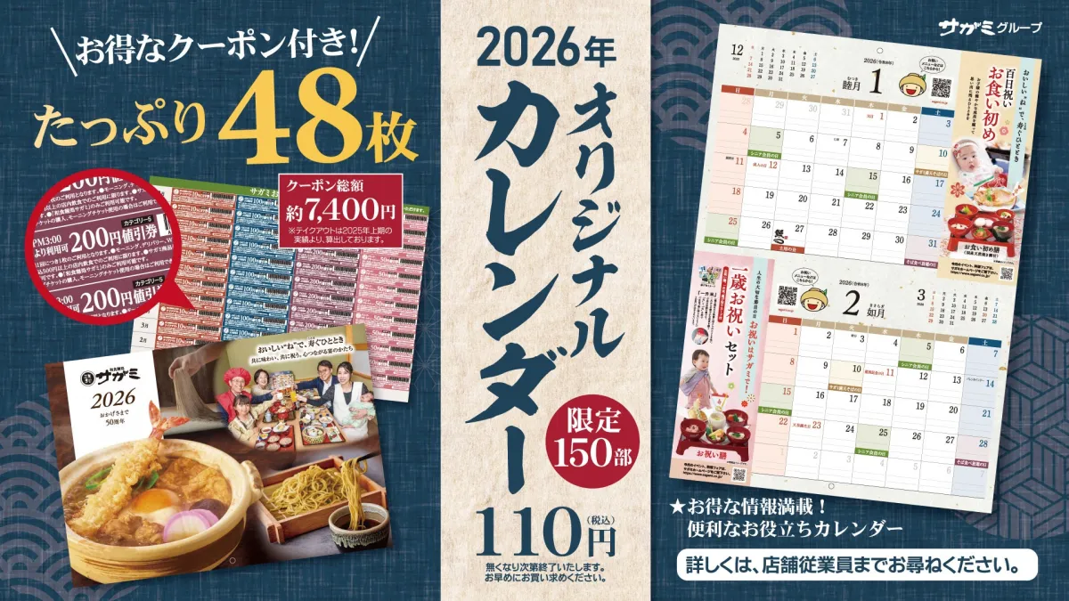 和食麺処サガミが2026年オリジナルカレンダーを販売