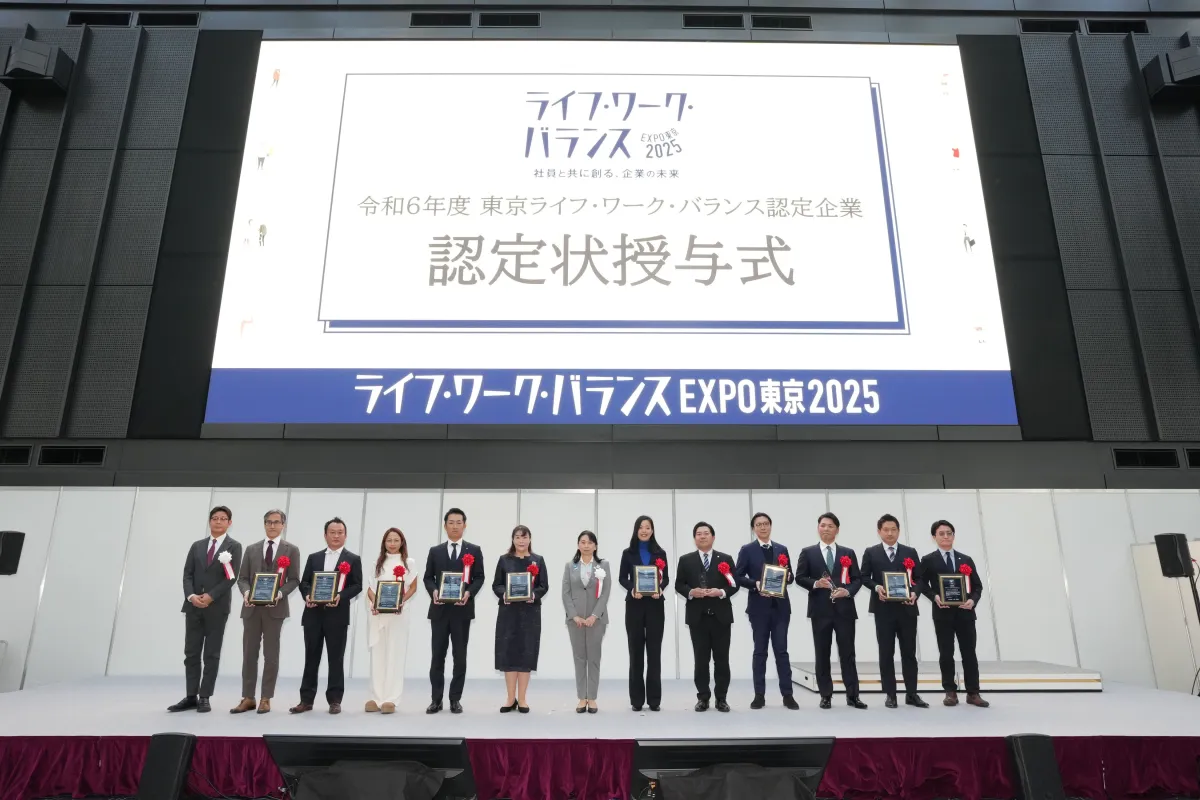 東京都が主催する「ライフ・ワーク・バランスEXPO東京2025」内で、令和6年度の東京ライフ・ワーク・バランス認定企業の授与式が行われました。この式典では、認定を受けた11社の発表があり、その中でも優れた取り組みを行った企業に対して大賞および優秀賞が授与されました。