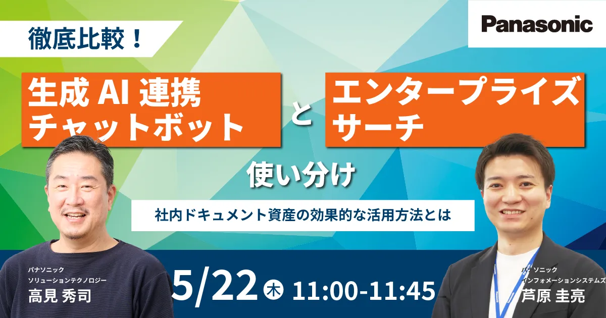2025年5月22日(木)、パナソニック インフォメーションシステムズ株式会社が主催する無料ウェビナー『徹底比較!生成AI連携チャットボットとエンタープライズサーチの使い分け』が開催されます。DX(デジタルトランスフォーメーション)の推進が求められる現代において、業務効率化やデータ活用が大きな課題となっています。このセミナーでは、豊富な事例を基に、生成AI連携チャットボットとエンタープライズサーチの特性やメリットを徹底的に比較します。