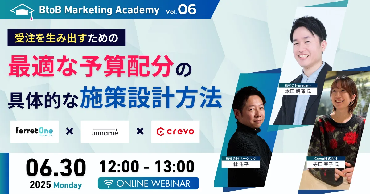 株式会社ベーシックは、BtoB企業に向けたマーケティング施策の効果的な予算配分や具体的な施策設計に関するセミナーを、2025年6月30日に無料で開催します。このセミナーの目的は、限られたリソースを活用して最大限の成果を上げるための知識を提供することです。参加を希望する企業は、12時から13時の1時間に渡って行われるこのセミナーにぜひご参加ください。