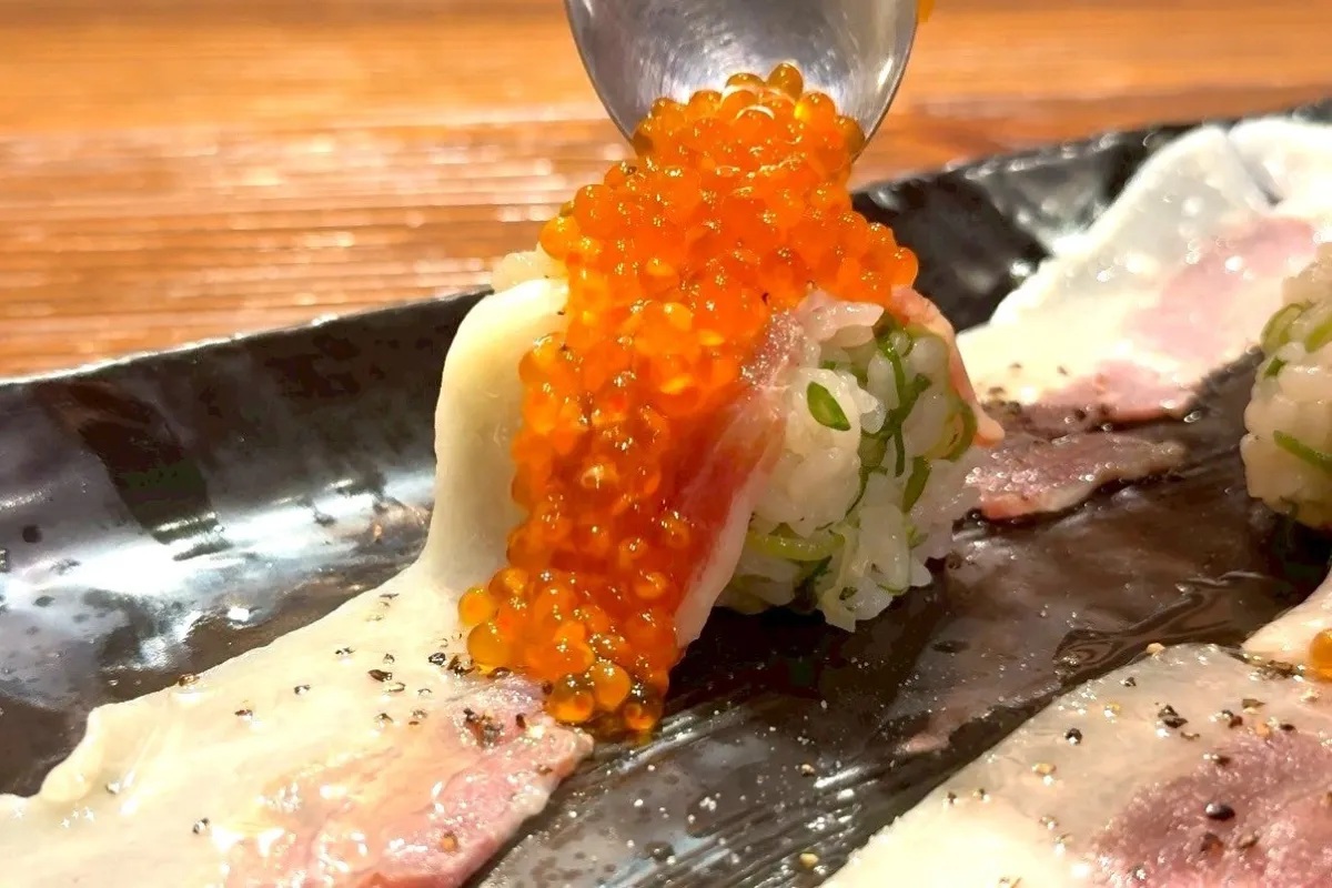 また、いくらのプチプチとした食感や濃厚な味わいが、馬肉の旨味と絶妙に絡み合います。馬肉と海の幸が一度に楽しめるこの一皿は、まさに最高の組み合わせです。