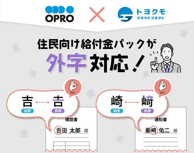 トヨクモクラウドコネクト株式会社(東京都品川区、代表取締役社長:田里友彦)は、自治体やBPO(ビジネス・プロセス・アウトソーシング)向けの『住民向け給付金パック』に外字出力機能を新たに搭載したことを発表しました。この新機能は、帳票ソリューション企業である株式会社オプロ(東京都中央区、代表取締役社長:里見一典)と協力して開発されました。