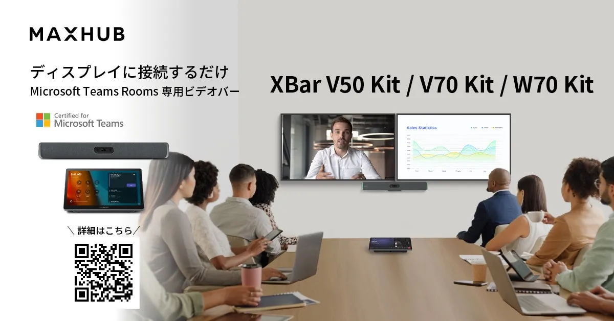 ナイスモバイル株式会社は、2025年9月29日(月)に新製品、MAXHUB「XBar」シリーズを発売します。この製品は、ハイブリッド会議を容易にするために特別に設計されたMicrosoft Teams Rooms専用のビデオバーであり、ディスプレイに接続するだけで利用可能です。カメラ、マイク、スピーカー、そしてOSが一体化しており、面倒な設定なく、快適なオンライン会議環境を提供します。