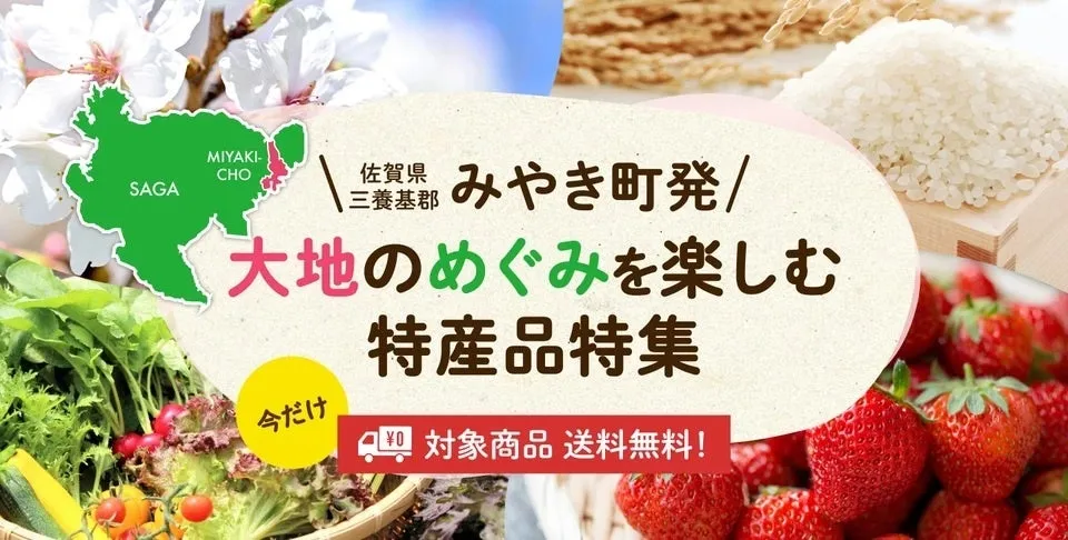 みやき町は、豊かな自然環境と肥沃な土地で知られる地域で、米、野菜、いちごなど多彩な農産物が生産されています。特集では、季節ごとの新鮮な食材、つまりみやき町の生産者の手仕事が生んだ美味しさを余すことなくお楽しみいただけます。中でも、特に期間限定の「送料無料キャンペーン」は見逃せません!