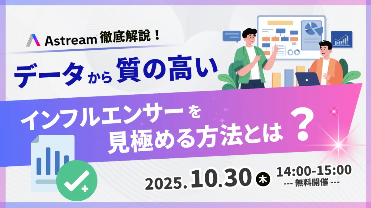 2025年10月30日、株式会社Aが主催するオンラインセミナー「Astream 徹底解説!データから質の高いインフルエンサーを見極める方法とは?」が開催されます。このウェビナーは、インフルエンサーマーケティングの施策を自社で内製化したい企業に向けて、具体的な解決策を提供するものです。