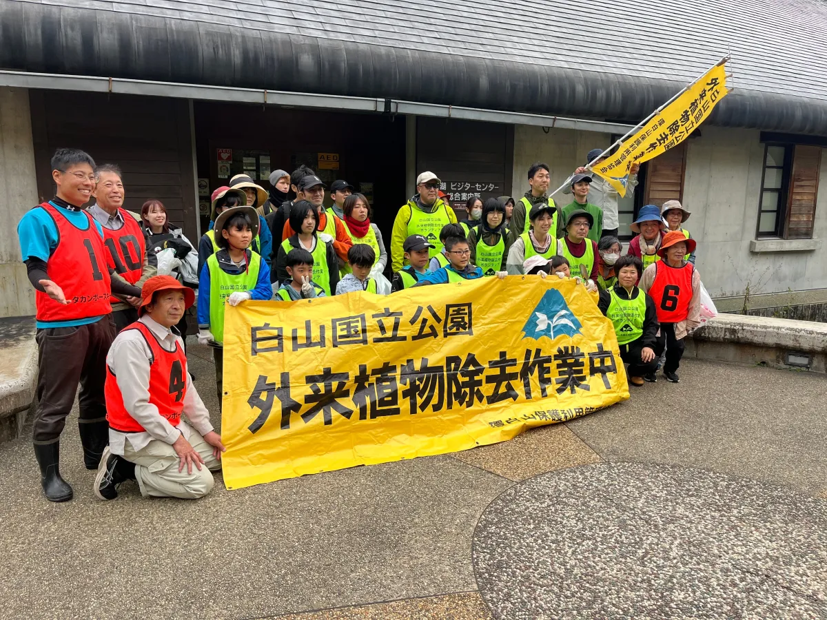 また、競技開始前には、特定非営利活動法人 環白山保護利用管理協会の稲葉理事による、オオキンケイギクの特性や駆除方法のレクチャーも行われました。大会の参加者への報酬として、地元の特産品や野菜などが贈呈され、地域の魅力を再発見する機会ともなりました。