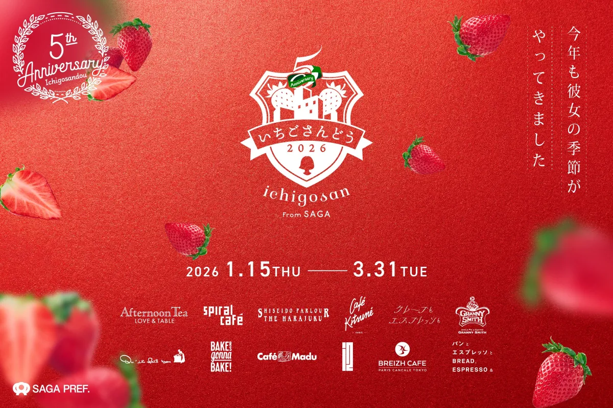 佐賀県が誇るブランドいちご「いちごさん」が表参道の人気カフェやレストランと手を組み、コラボレーションイベント「いちごさんどう2026」を開催します。今年のイベントは、2026年1月15日から3月31日までの約2ヶ月間にわたって行われます。5周年を迎える今年は、過去最多の12店舗が参加し、特別なスイーツメニューが楽しめるチャンスです。