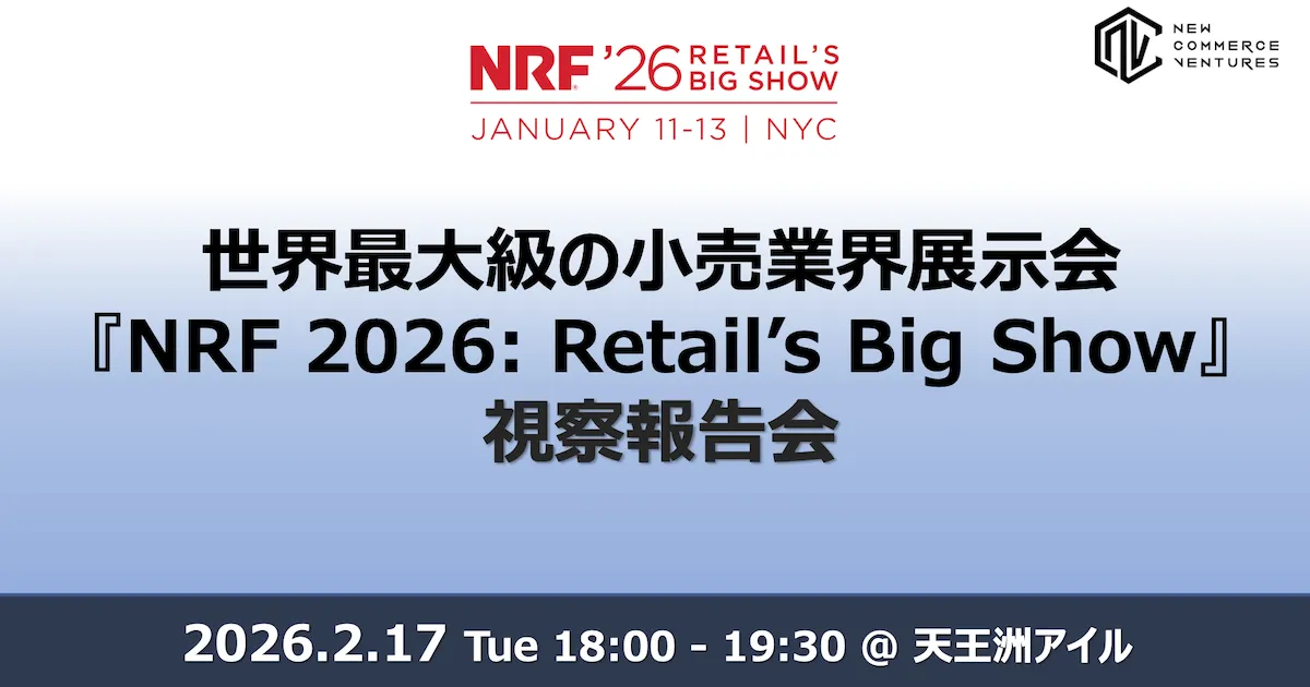 我々、New Commerce Ventures株式会社(東京都品川区、代表取締役:松山馨太・大久保洸平)は、イベントから得た具体的な情報や実際の体験を報告する会を開催します。この報告会では、現地で収集したデータやトレンド、そして注目のスタートアップや店舗視察のレポートも合わせてお届けします。