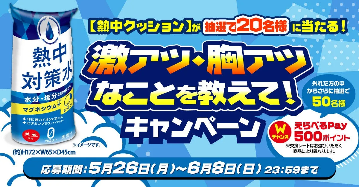 赤穂化成株式会社は、この夏に「熱中対策水」をテーマにしたSNSキャンペーン『激アツ・胸アツなことを教えて!キャンペーン』を実施します。昨年も好評を博したこの企画は、2008年に発売された「熱中対策水」の人気を再燃させるものです。