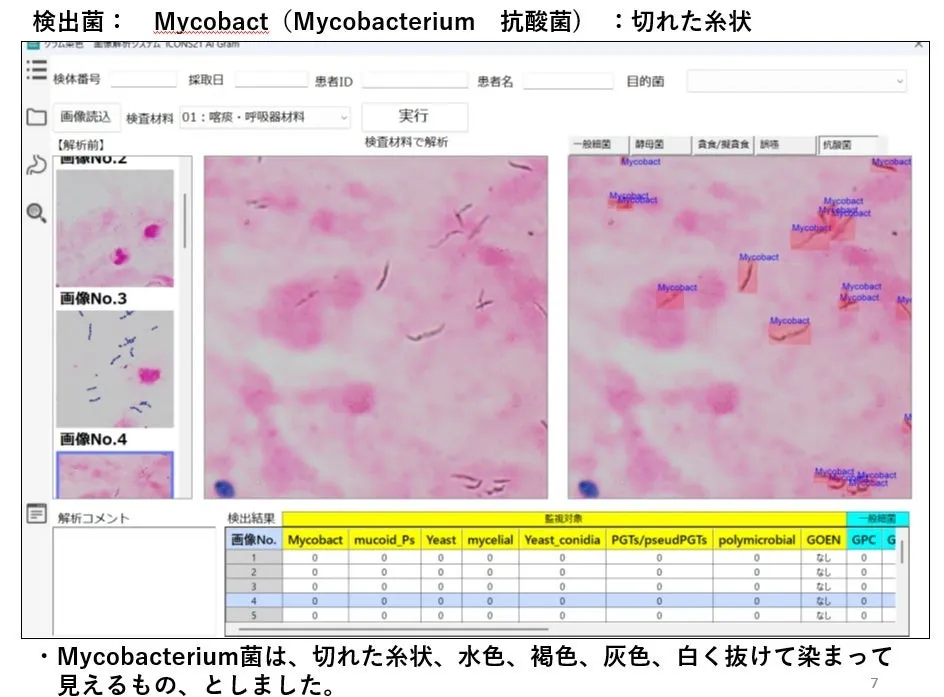 グラム染色画像の目視判定は、感染症診療の重要な一環を担っているものの、現在、熟練した判定者の不足が深刻です。この不足は、医療現場における診療能力に影響を与えるだけでなく、若手医療者や臨床検査技師への教育負担も増大させています。この状況を改善するために、ケーディーアイコンズは独自の技術と知見を活かし、このAI解析システムを開発しました。