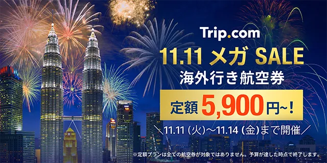今年もいよいよ年の瀬を迎え、旅行の計画を立てる時期がやってきました。そんな中、グローバルオンライン旅行サービスを提供するTrip.comが、特別なセールを実施します。それが、平成2025年11月11日(火)から11月14日(金)の4日間限定開催の「11.11 メガ SALE」です。これは年内最後の大規模なセールで、国内外の航空券やホテルを特別価格で手に入れるチャンスです。