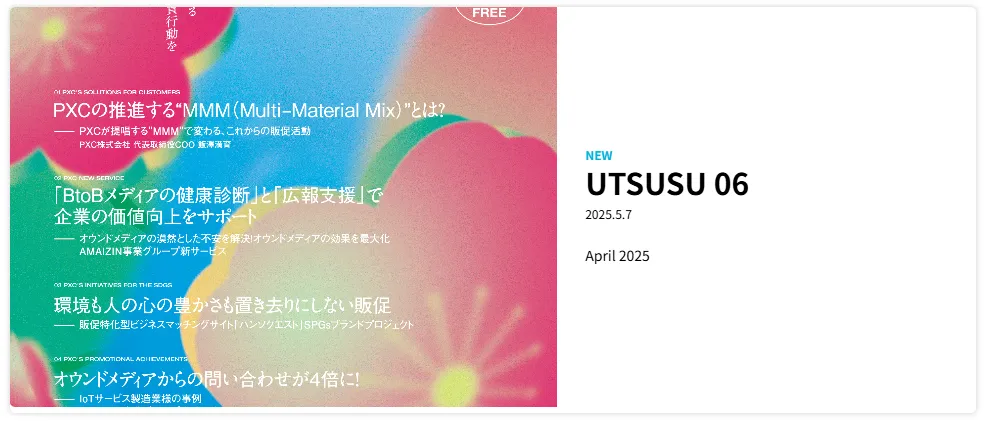 PXCは販促活動を支援するために常に新しい情報を発信し続けており、関心のある方にとっては非常に役立つリソースとなっています。この「UTSUSU vol.6」は、セールスプロモーションの未来を知るための必見の資料と言えるでしょう。