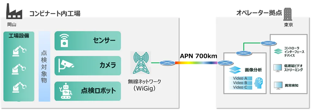 2026年2月、岡山県の水島臨海工業地帯において、IOWN® APNと60GHz無線LANを活用した通信環境の構築の検証が実施されました。この実証により、屋外環境での大容量・低遅延通信が実現でき、外部の計算資源を活用したスマートメンテナンスが確認されました。特に、約700kmの距離を結ぶNTTグループの東京と岡山を結ぶネットワーク構築が大きな成果となりました。