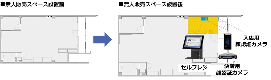 この無人店舗システムの特長は、既存の店舗へ容易に後付けできる点です。低コストかつリスクの少ない方法で無人販売スペースを設置し、営業時間外など特定の時間帯に無人化することで、人件費を増やさずに売上の増加を図ることができます。