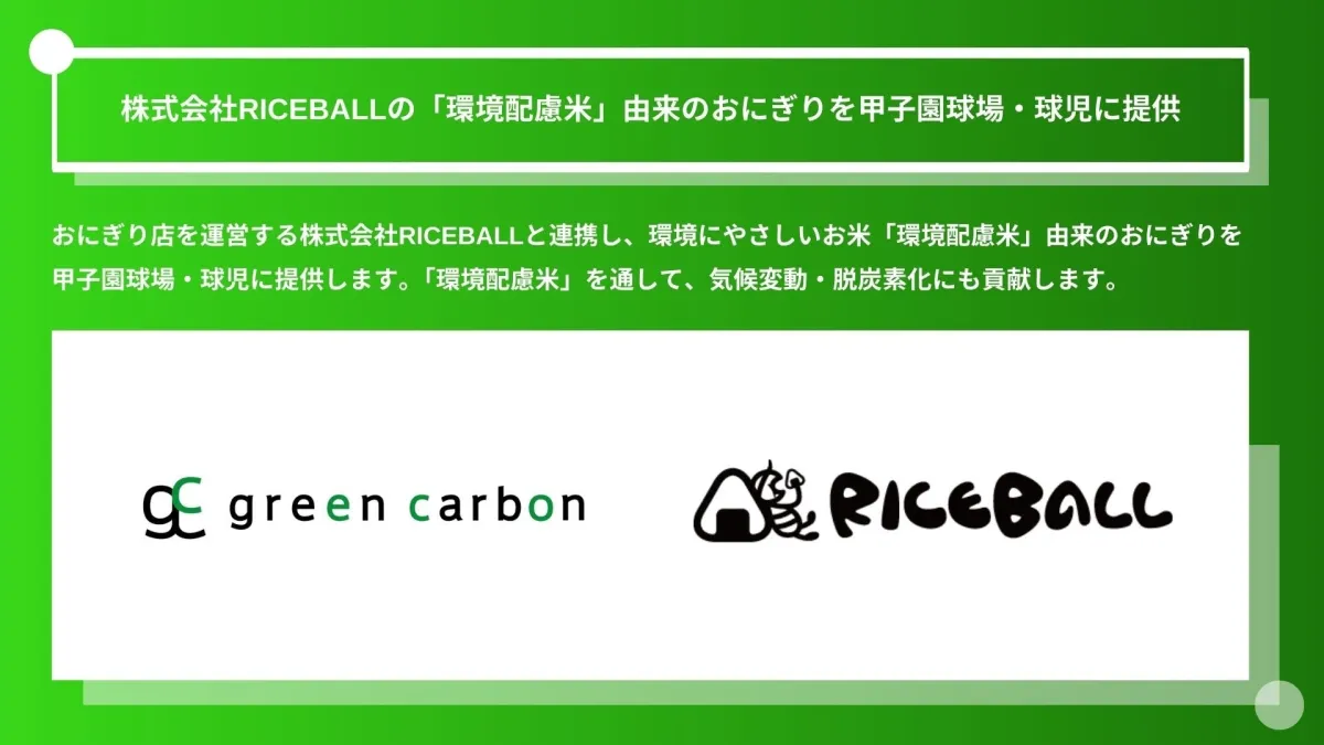 Green Carbon株式会社が、株式会社RICEBALLとの協力で実現した新しい取り組みについて紹介します。この取り組みは、甲子園球場で戦う高校球児たちに向けて、環境に配慮したお米「環境配慮米」を使用したおにぎりを提供するものです。環境問題への意識が高まる中で、このプロジェクトは消費者に新たな選択肢を提供し、気候変動への取り組みも促進するものと期待されています。
