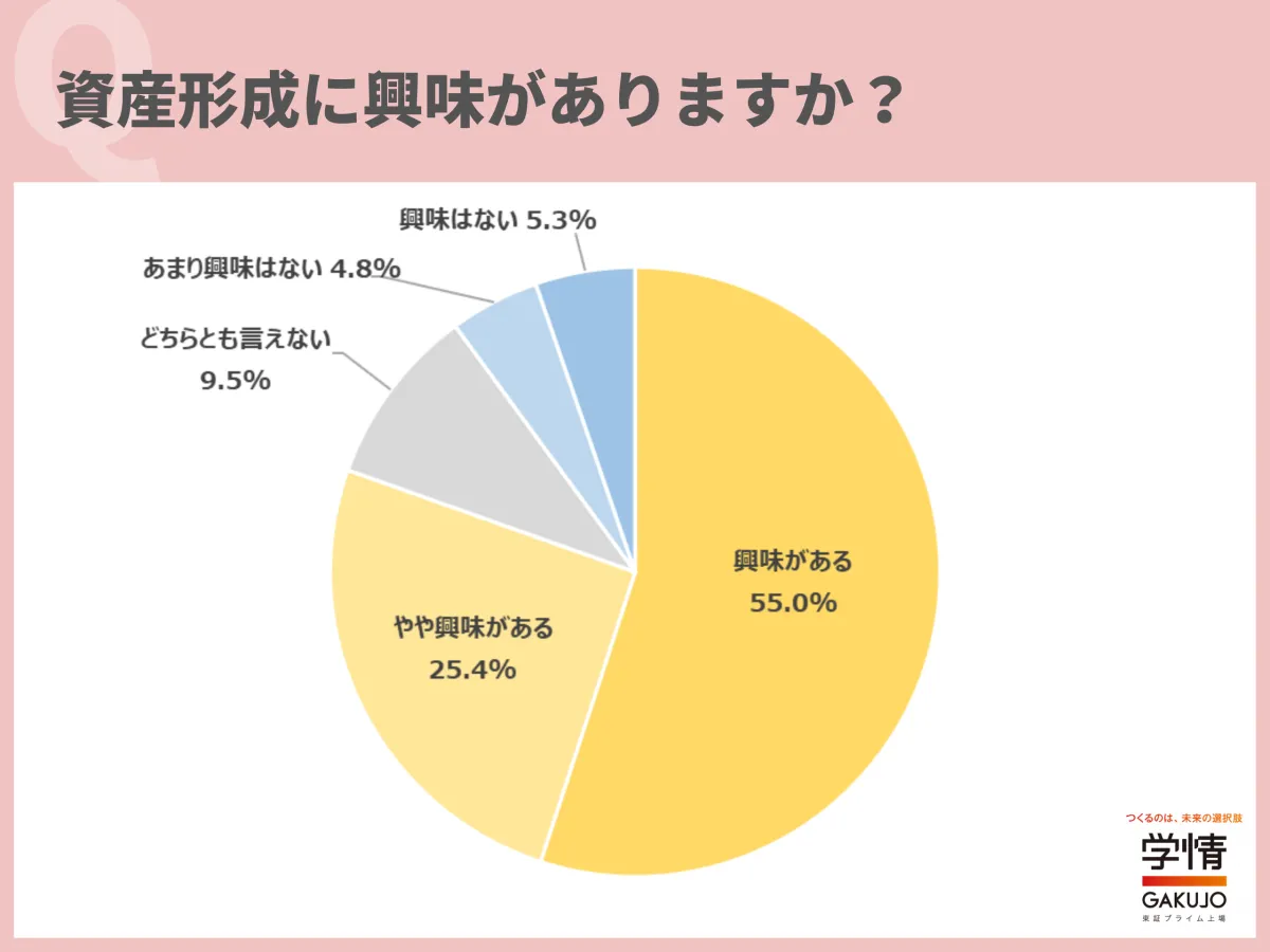 株式会社学情が実施した調査結果によると、20代の62.4%が「資産形成に興味がある」と答え、多くの若者が資産形成に関心を寄せていることが明らかになりました。この調査は、2024年10月18日から11月1日にかけて行われ、189件の有効回答を得ました。