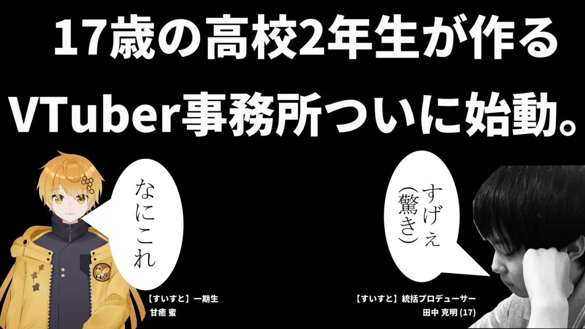 統括プロデューサーを務めるのは、なんと17歳の高校2年生、田中克明さんです。彼はこの業界に入ってから2年が経ち、自らが運営するVTuber事務所が成功を収めることを夢見ています。田中さんは、不登校を経験した過去を持ちながらも、真夜中にVTuberを通して貰った希望を忘れません。「辛い時期を共にしてきた視聴者たちに、夢と希望を与えたい」という彼の思いは、「すいすと」の全ての活動に詰まっています。