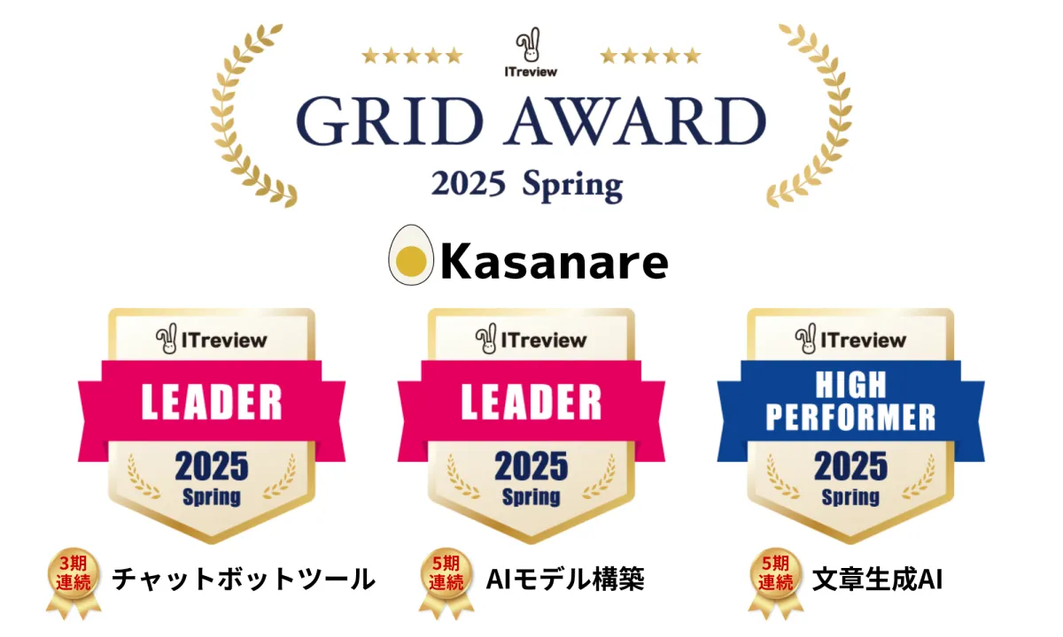 カサナレ株式会社(東京都渋谷区)、代表取締役の安田喬一氏が率いる企業は、ITレビューの評価が高い「ITreview Grid Award 2025 Spring」にて大きな成果を挙げました。この度、同社は「AIモデル構築」部門で5期連続の最高位である「Leader」を獲得し、「チャットボットツール」部門でも3期連続の「Leader」を達成しました。さらに、「文章生成AI」部門でも5期連続で「High Performer」という評価を受けました。