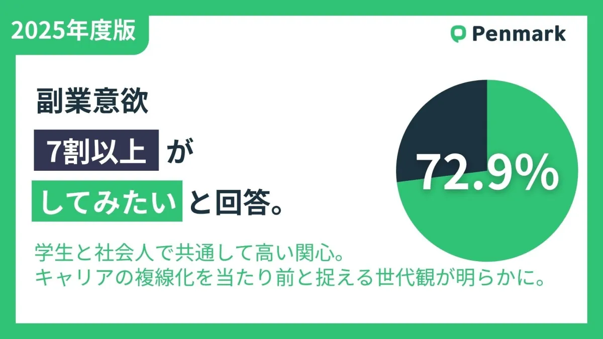 株式会社ペンマークが実施したZ世代に関する就業意識調査によると、全国の学生の74%以上が副業や兼業に対してポジティブな意見を持っています。調査は学生407人と社会人176人を対象に行われ、ここで得られた結果は、Z世代の働き方に対する考え方を深く掘り下げるものとなっています。
