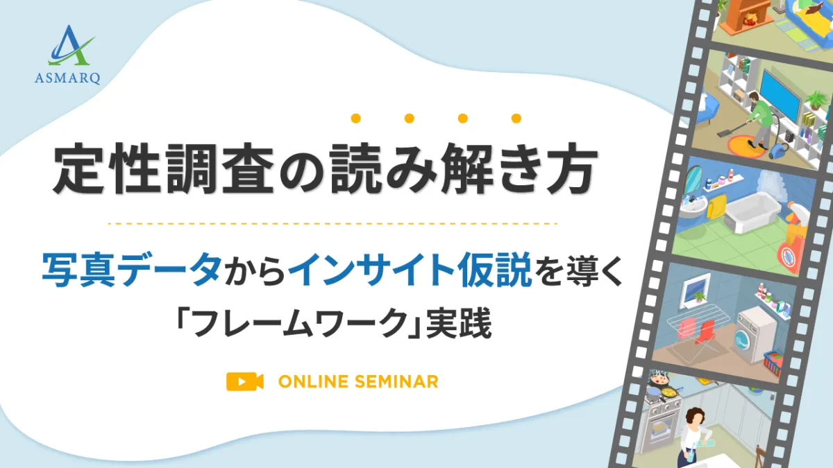 2026年2月19日、株式会社アスマークが主催するセミナー「定性調査の読み解き方~写真データからインサイト仮説を導く『フレームワーク』実践~」が開催されます。このセミナーでは、写真データを基に、実際のマーケティングに役立つ具体的なインサイト仮説を導き出すためのフレームワークについて、事例を交えて解説します。