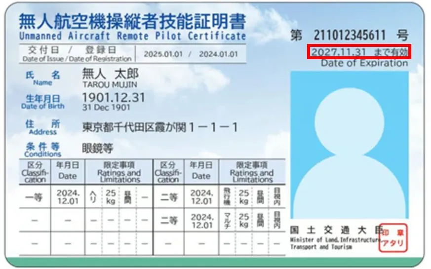 無人航空機操縦者技能証明制度は、2022年12月5日から施行され、多くの方々がこの国家資格を取得しています。この制度では、一等、二等を合わせて、すでに2万人以上が技能証明を取得しました。しかし、この技能証明を維持するためには、更新が必要です。交付日から3年ごとに講習を受けることで、資格を更新する必要があります。