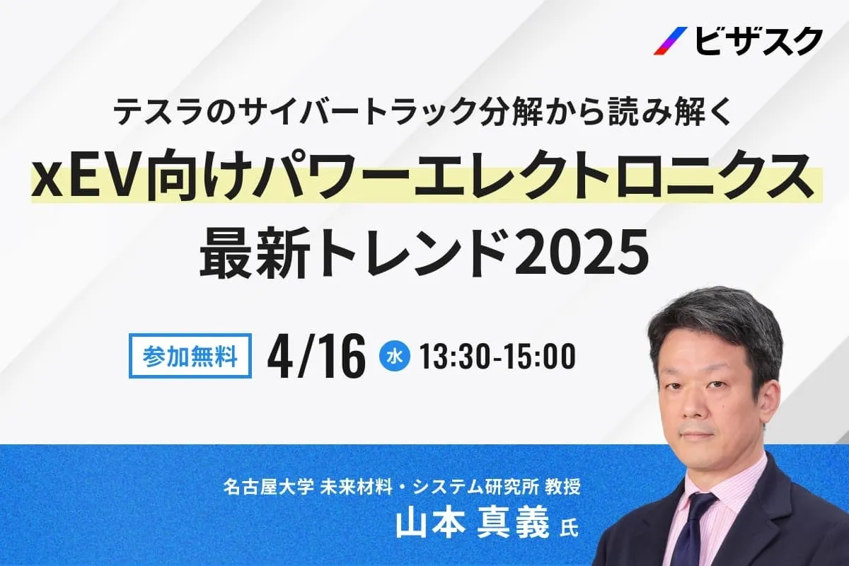 テスラの革新技術に対する関心が高まる中、興味深い無料オンラインセミナーが開催されます。このセミナーでは、名古屋大学 未来材料・システム研究所の教授、山本 真義氏が登壇し、「xEV向けパワーエレクトロニクス最新トレンド 2025」というテーマで詳しい解説を行います。セミナーは4月16日(水)の午後1時30分からスタートし、Zoomでのオンライン開催です。