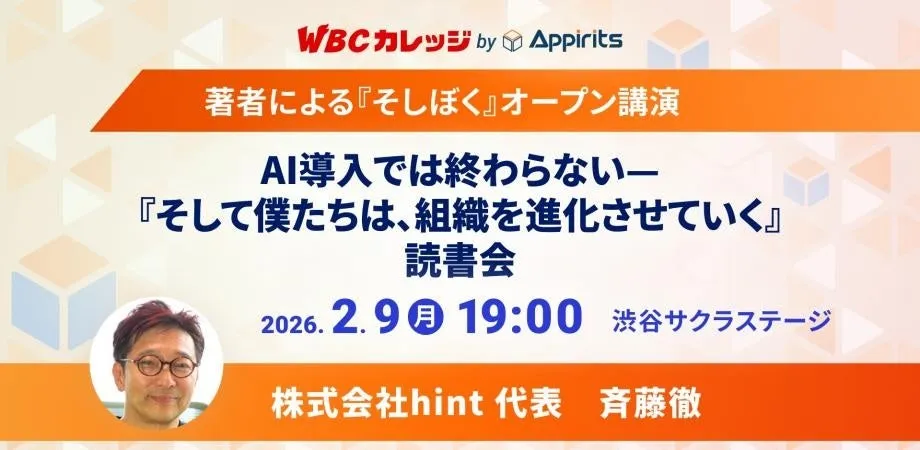 2026年2月9日に、株式会社アピリッツが主催するWBCカレッジの講演会が開催されます。このイベントでは、著名な著者であり、組織論の専門家である斉藤徹氏が登壇し、彼の著書『そして僕たちは、組織を進化させていく』に基づいて、AI技術の導入だけでは組織が変わらない理由を探ります。